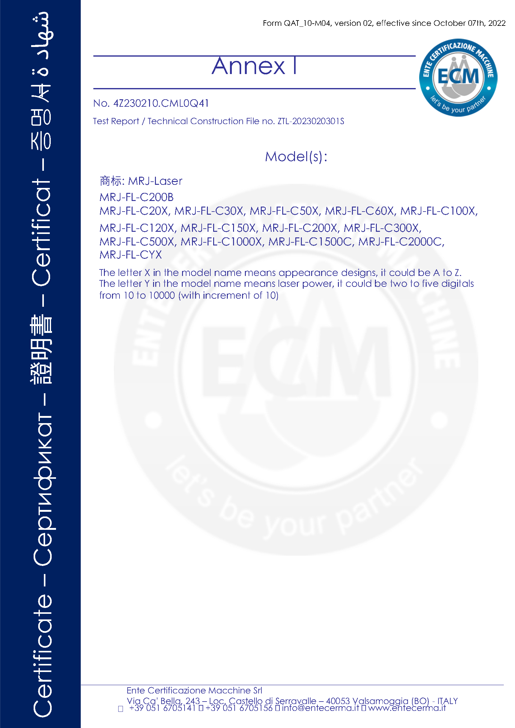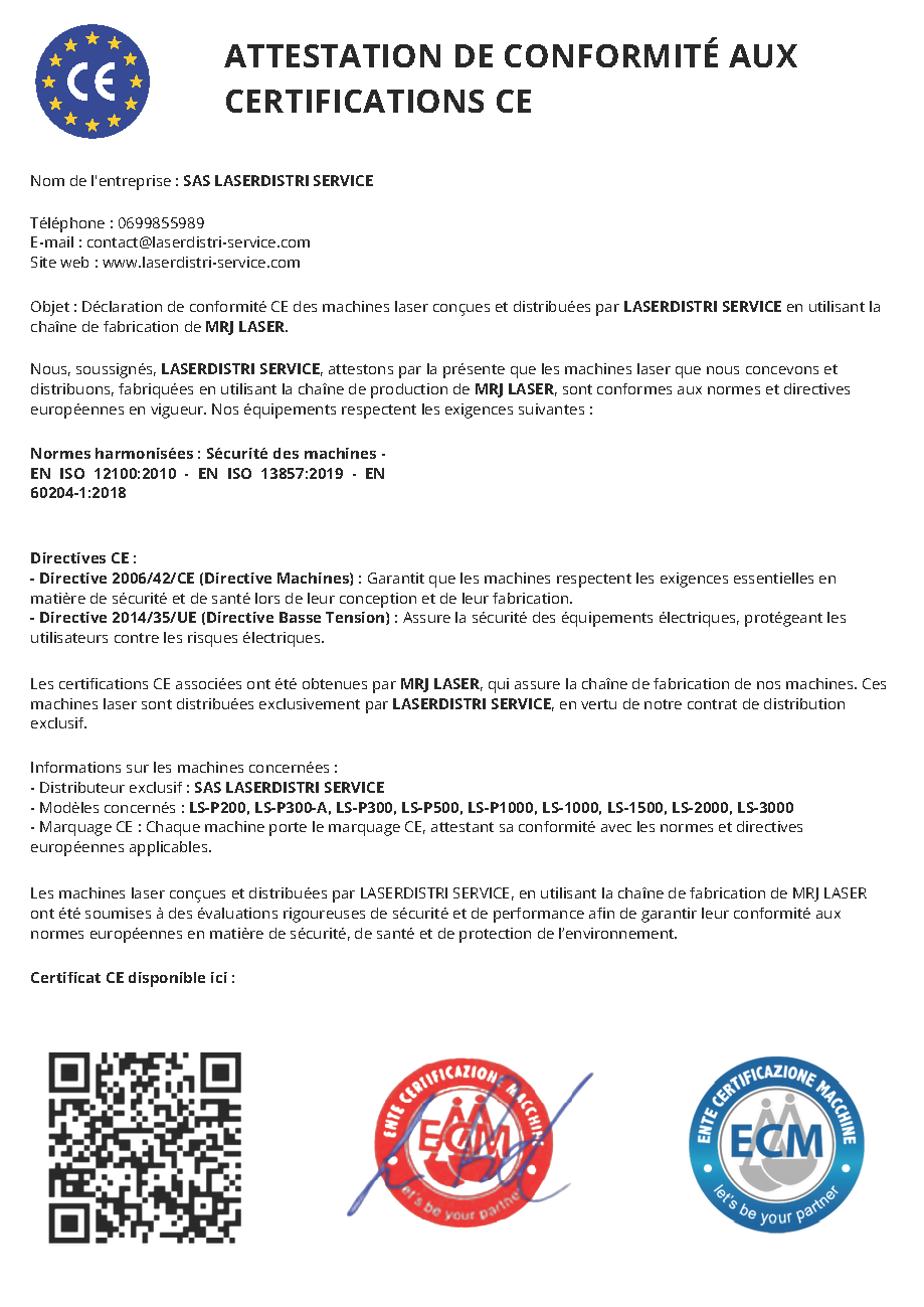 Attestation de conformité aux certifications CE